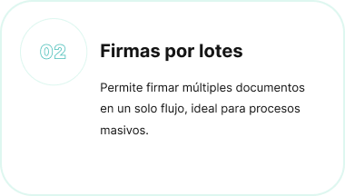 Permite firmar múltiples documentos en un solo flujo, ideal para procesos masivos.