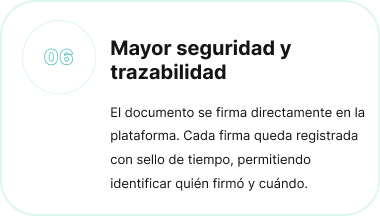 Cada firma queda registrada con sello de tiempo, permitiendo identificar quién firmó y cuándo.